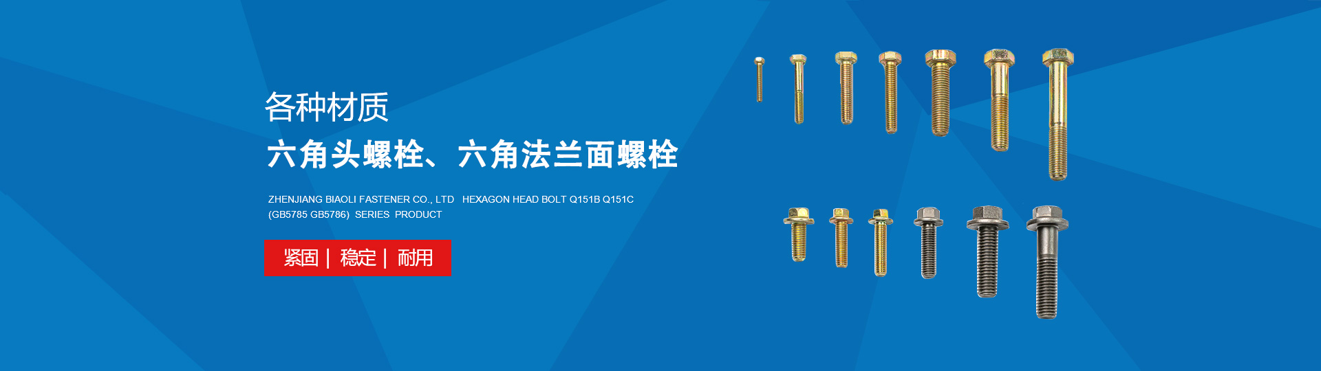 鎮江市標力緊固件有限公司是國家中型企業,中國汽車工業協會聯合體成員廠之一,江蘇省明星企業,位于江蘇省鎮江市諫壁鎮。 目前專業生產各類型螺栓、螺母、鉚釘、銷軸、墊圈及各類非標準件產品,產品注冊商標為“BL”牌。